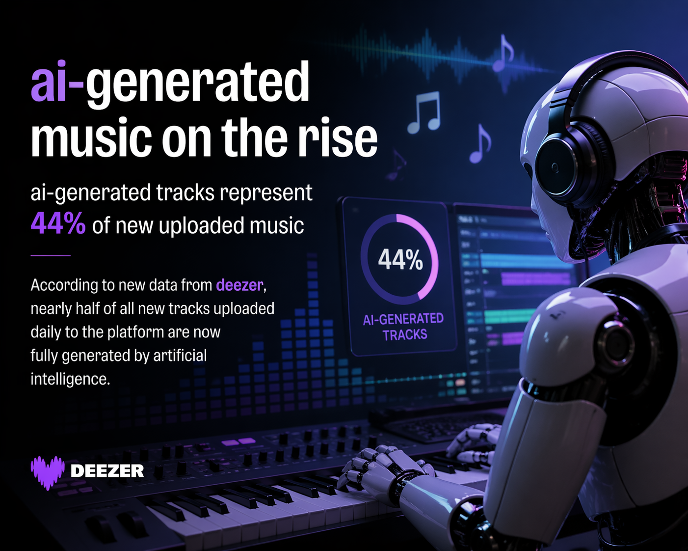 Deezer now receives about 75,000 AI‑generated tracks daily, which adds up to more than 2 million new synthetic songs each month. Despite these huge numbers, most of this music doesn’t actually get played by listeners only about 1 to 3 percent of total streams come from AI‑created songs, thanks to Deezer’s efforts to limit their visibility.