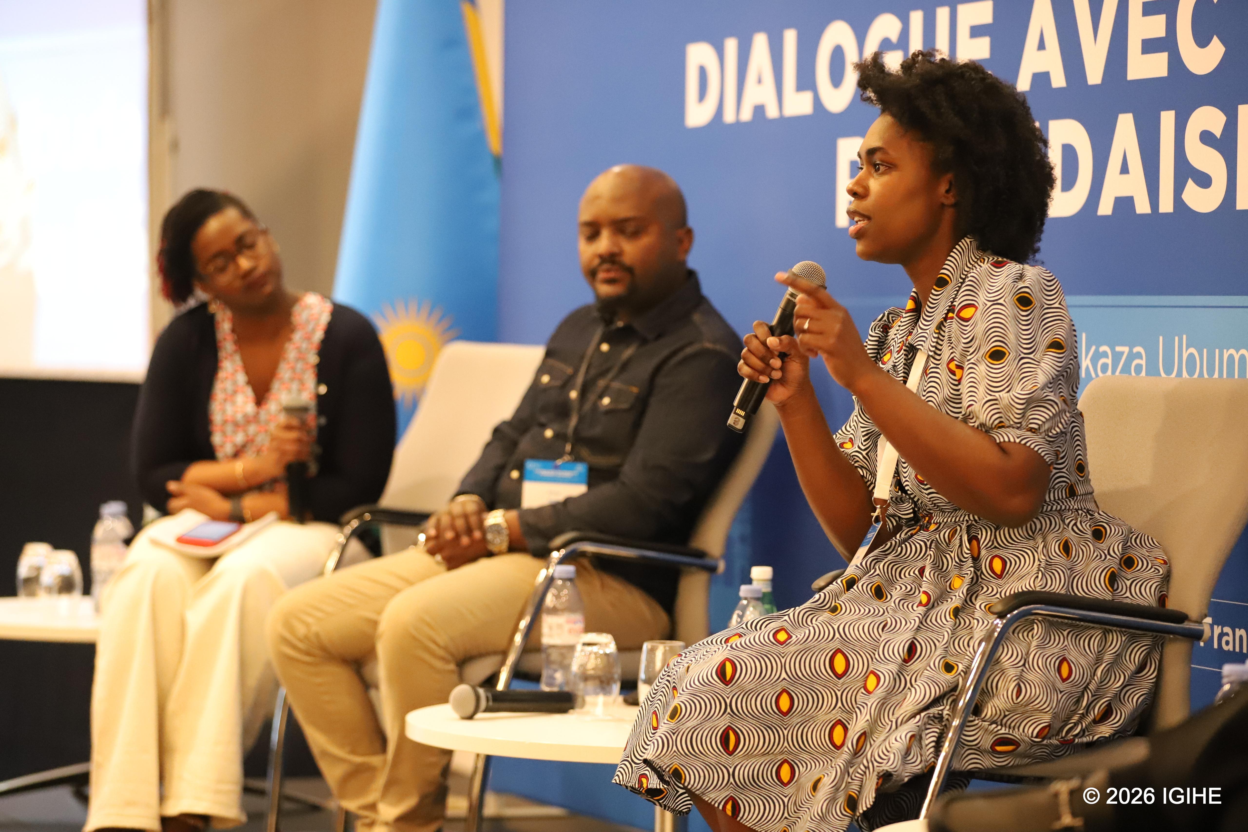Gatete Olivier discussed the role of social media and how young Rwandans living or raised in Europe can use digital platforms to access reliable information. He explained that he initially feared speaking publicly against misinformation about Rwanda, but later launched YouTube programs and created his own channel to counter false narratives. His experience shows how social media can become a powerful vehicle for truth and civic engagement.