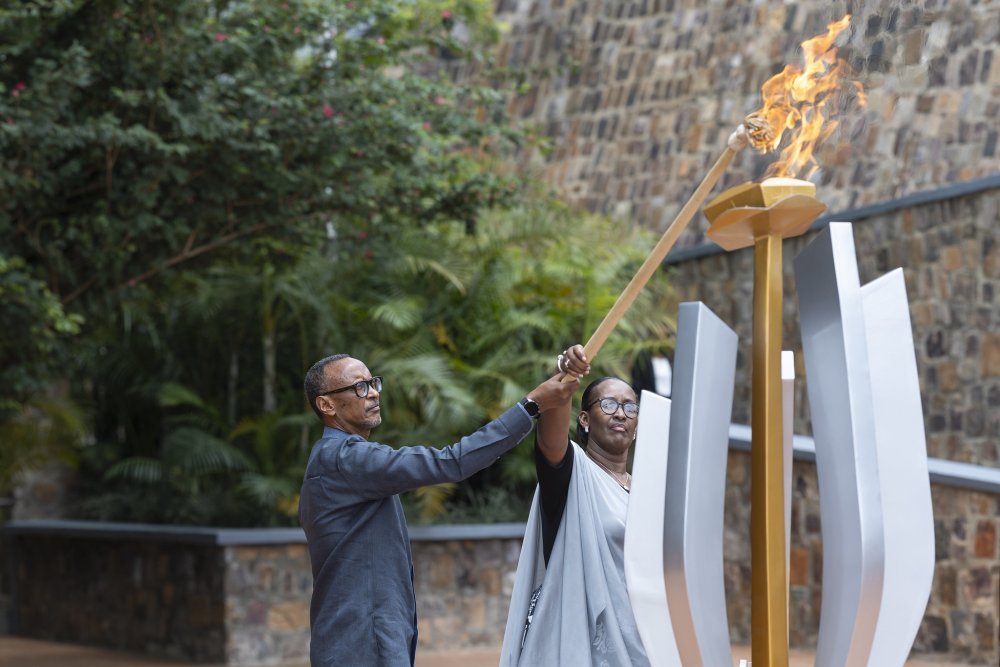 President Kagame and First Lady Jeannette Kagame lighting the Flame of Hope in 2025 during the 31st commemoration of the Genocide against the Tutsi.